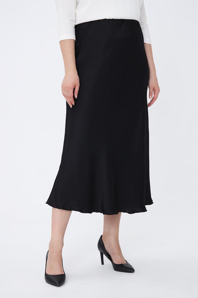 Классический крой юбки позволяет сочетать её с различными видами верха – от повседневных футболок до элегантных блуз. Чёрный цвет делает эту модель универсальной и подходящей для любого случая.