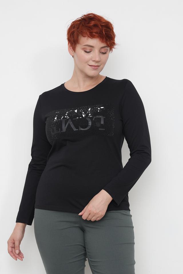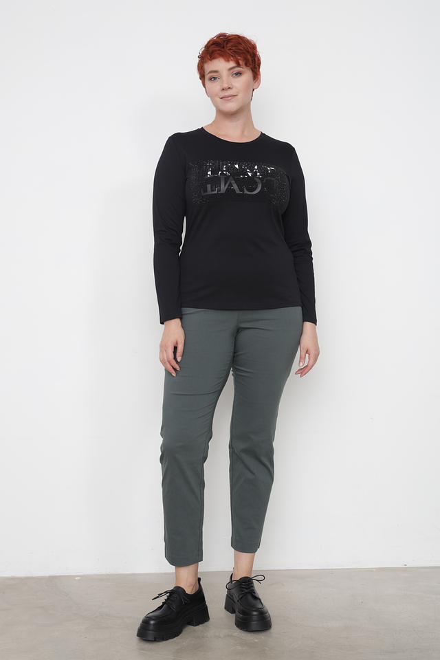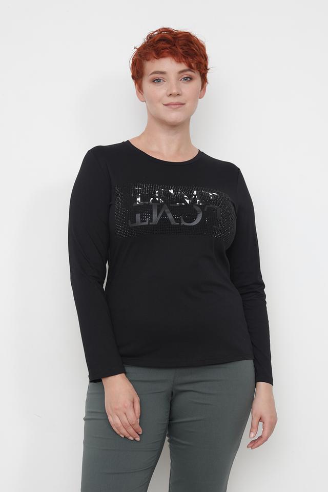 Особенностью модели является оригинальный логотип бренда, выполненный в виде декоративной аппликации с имитацией страз. Это придает лонгсливу изысканность и индивидуальность.