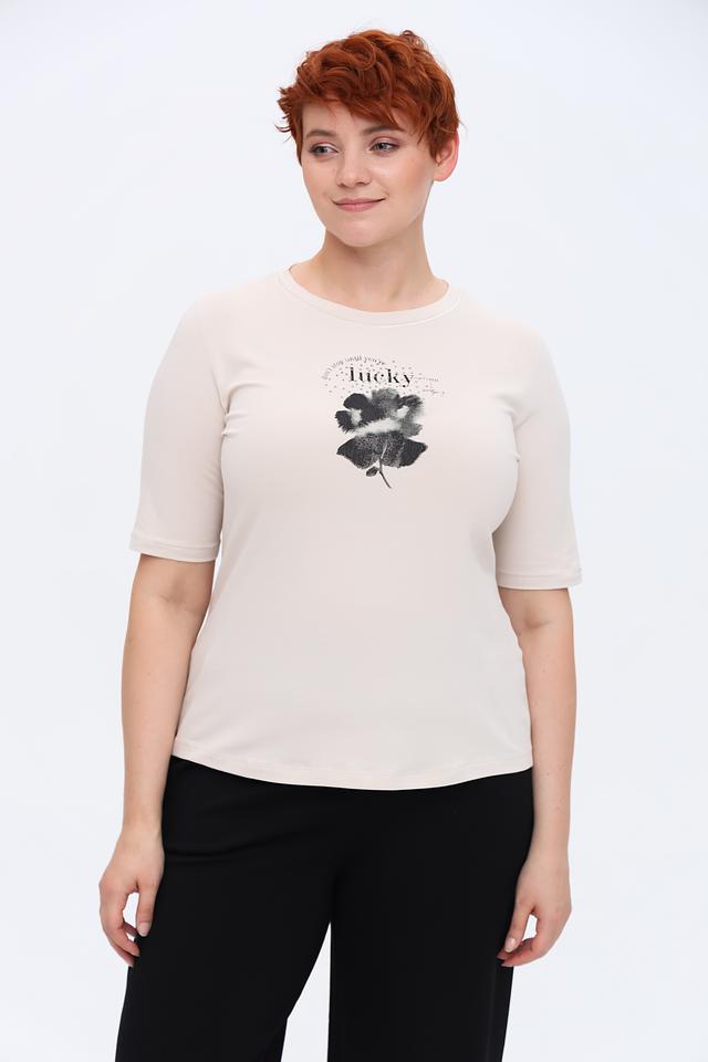 Бежевая футболка Lecomte с оригинальным принтом "lucky" станет отличным дополнением к вашему гардеробу. Изготовлена из мягкого хлопка с добавлением эластана для комфорта и хорошей посадки. Состав: хлопок 95%, эластан 5%