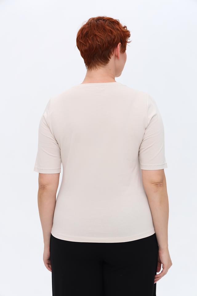 Эта футболка от Lecomte выполнена в нежном бежевом цвете и станет универсальной базой для создания различных образов. Прямой крой обеспечивает свободу движений, а короткие рукава делают ее идеальным выбором для теплой погоды.