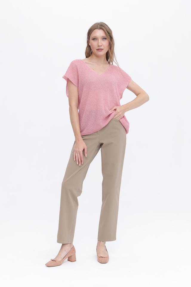 - Нежный оттенок. Приглушенный розовый цвет жилета подчеркивает женственность и легкость образа, идеально вписываясь в весенне-летний гардероб и добавляя свежих ноток.