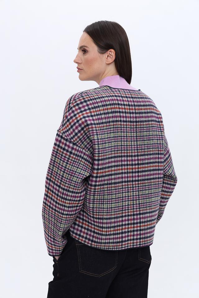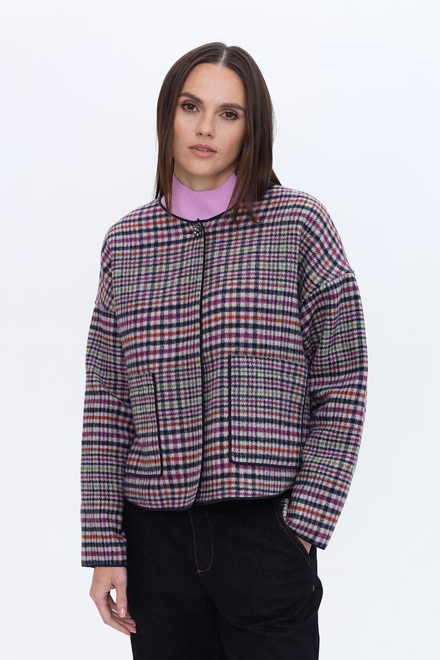 Жакет имеет прямой крой, который подходит для большинства типов фигур. Ткань – это сочетание полиакрила, полиэстера, шерсти и эластана, что обеспечивает изделию мягкость, тепло и хорошую посадку по фигуре. Клетка придает жакету особый шарм и делает его универсальным для создания различных образов.