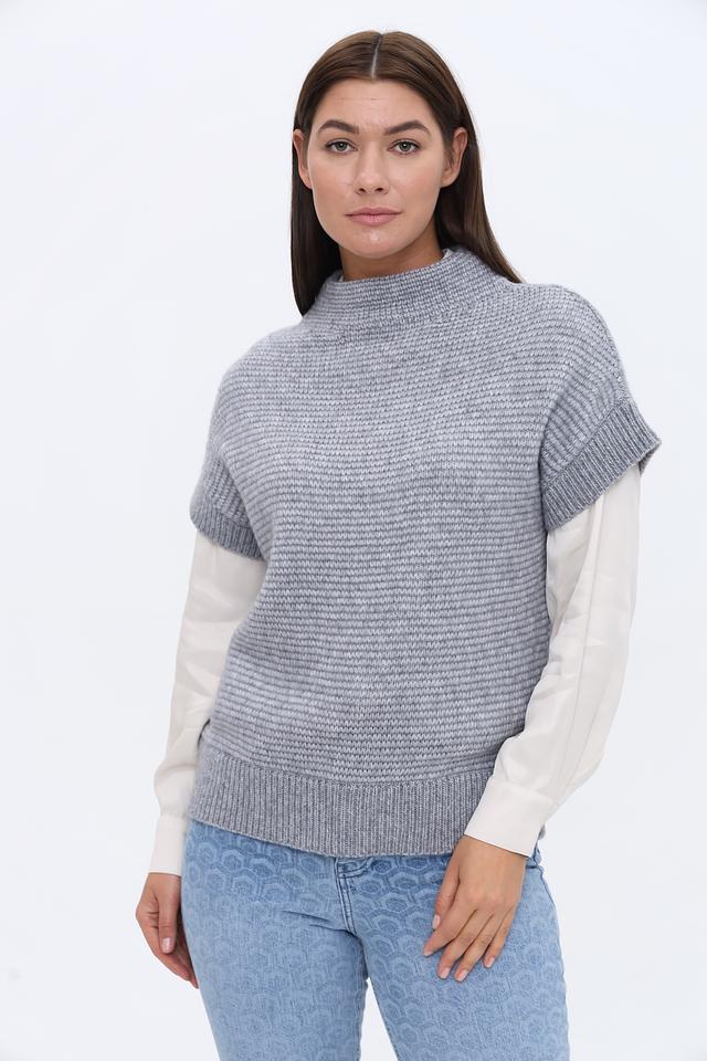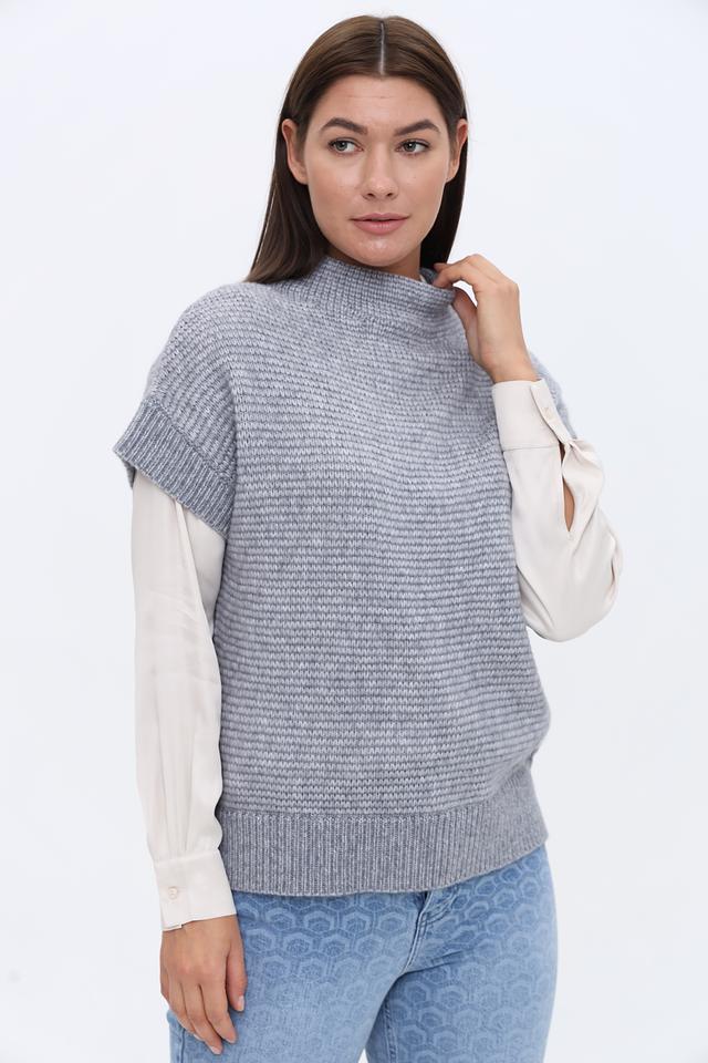 Серый вязаный жилет Lecomte – стильная и комфортная модель без рукавов. Изготовлен из мягкой смеси шерсти, хлопка и вискозы, что обеспечивает тепло и удобство в носке. Идеально дополнит базовый гардероб. Состав: шерсть 46%, хлопок 44%, вискоза 8%, полиэстер 2%