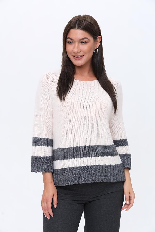Бежевый пуловер Lecomte с полосками – стильная и комфортная модель для создания повседневных образов. Изготовлен из мягкой пряжи с добавлением шерсти, имеет удобный крой и ¾ рукава. Состав: полиамид 42%, шерсть 29%, полиакрил 29%