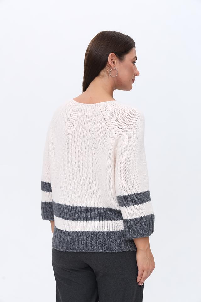 Этот пуловер идеально подойдет для создания повседневных образов. Его можно сочетать с джинсами, брюками или юбками. Благодаря своему универсальному дизайну, он легко впишется в любой стиль. ¾ рукава делают его подходящим для ношения в межсезонье.