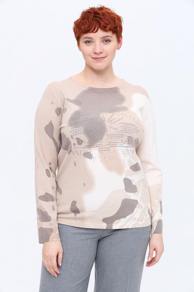 Передняя часть пуловера украшена декоративными стразами, образующими эффектный узор. Вырез горловины – округлый, а длинные рукава обеспечивают комфорт в прохладную погоду.