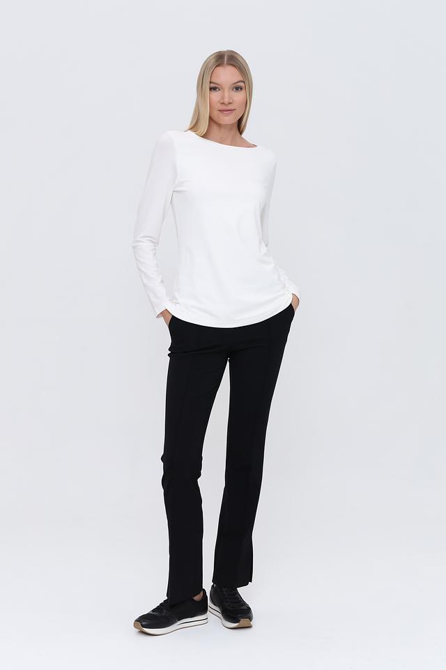 Брюки имеют прямой крой, обеспечивающий свободу движений и комфорт в течение всего дня. Они идеально подходят для создания как деловых, так и повседневных образов.