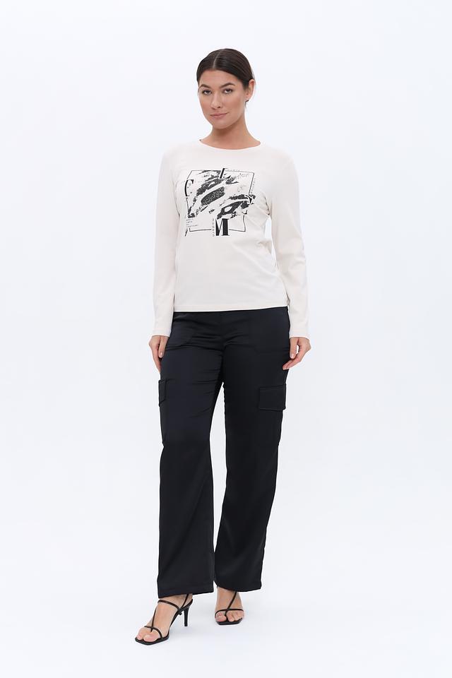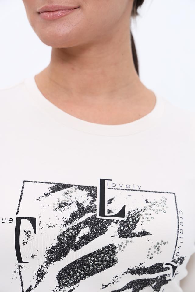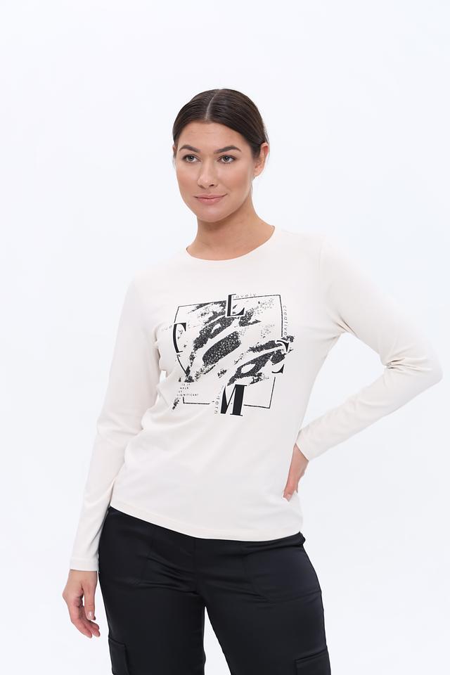 Женский лонгслив Lecomte кремового цвета с оригинальным графичным принтом. Изготовлен из мягкого хлопка с добавлением эластана для комфорта и свободы движений. Идеально подходит для создания повседневных образов. Состав: хлопок 95%, эластан 5%