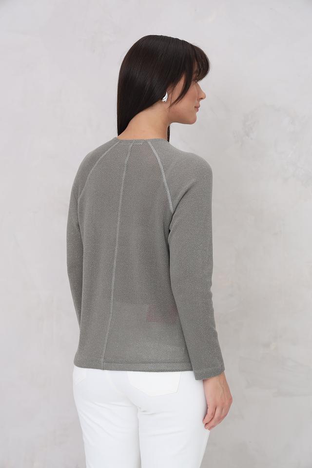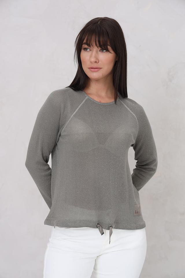 Серый пуловер Lecomte из хлопкового трикотажа с V-образным вырезом и завязками по бокам. Модель имеет лёгкую текстуру и спортивный стиль благодаря отделке на плечах. Состав: хлопок 87%, полиэстер 8%, полиамид 5%