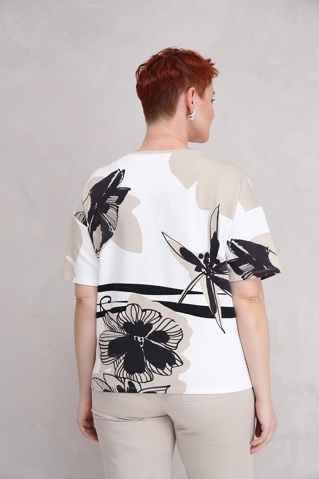 Эта стильная футболка от Lecomte станет отличным дополнением к вашему гардеробу. Футболка выполнена в белом цвете и украшена эффектным цветочным принтом, сочетающим в себе крупные цветы и графичные элементы.
