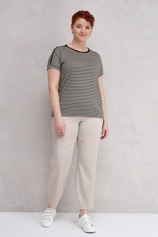 Женская футболка Lecomte чёрно-бежевого цвета с полоской – это стильная и удобная модель на каждый день. Футболка выполнена из мягкого и приятного к телу сочетания вискозы и полиэстера, обеспечивающего комфорт в носке. Состав: вискоза 58%, полиэстер 42%