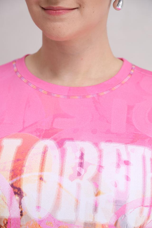 Эта стильная футболка от Lecomte станет ярким акцентом в вашем гардеробе. Футболка выполнена в нежном розовом цвете и украшена красочным цветочным принтом, который придает ей легкость и свежесть.