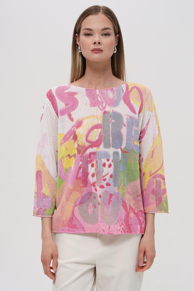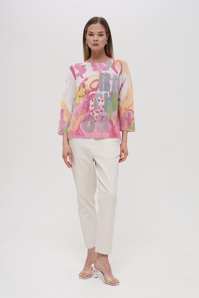 Женский пуловер Lecomte нежно-розового цвета с ярким абстрактным принтом станет стильным дополнением к вашему гардеробу. Модель выполнена из мягкого трикотажа с добавлением хлопка и льна, что обеспечивает комфорт и воздухопроницаемость. Состав: хлопок 61%, лен 21%, полиамид 18%
