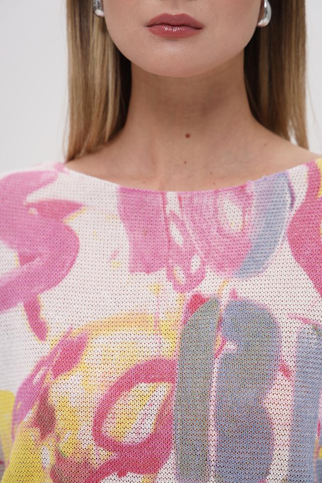 Этот женский пуловер от Lecomte – идеальный выбор для создания яркого и запоминающегося образа. Модель выполнена в нежно-розовой цветовой гамме и украшена оригинальным абстрактным принтом, выполненным в различных оттенках розового, желтого, голубого и зеленого.