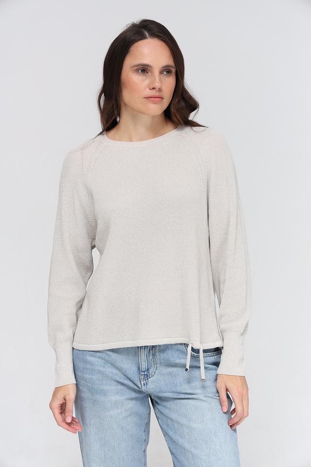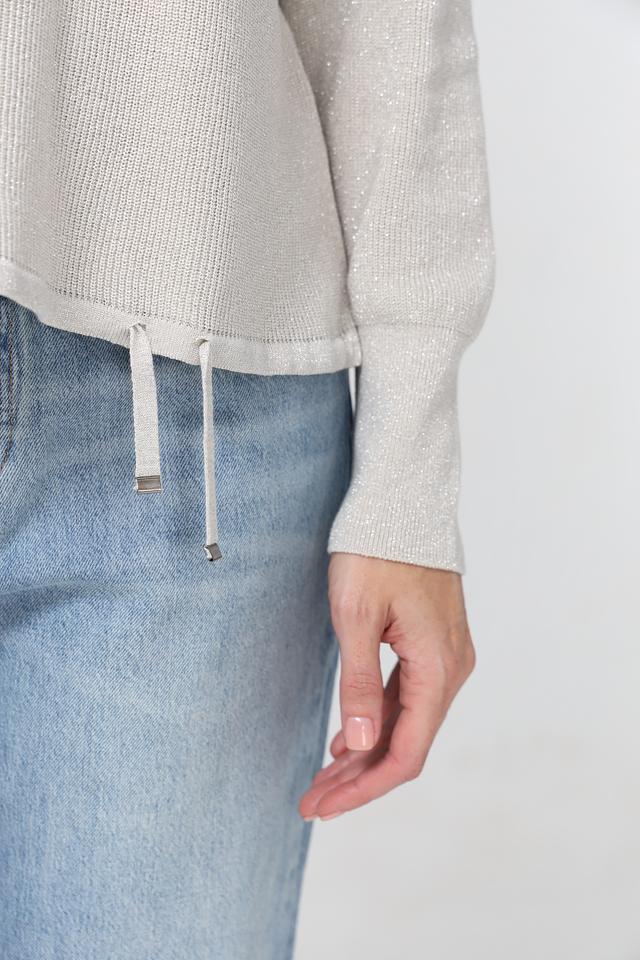 Особым акцентом являются манжеты с завязками, которые добавляют образу игривости и позволяют регулировать посадку по рукам. Пуловер идеально сочетается с джинсами, брюками или юбками, создавая стильный и комфортный образ.