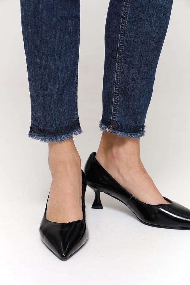 Слегка укороченный крой и зауженный силуэт делают эти джинсы универсальным выбором для создания различных образов. Они прекрасно сочетаются с топами, футболками и блузами, а также с обувью на каблуке или плоской подошве.