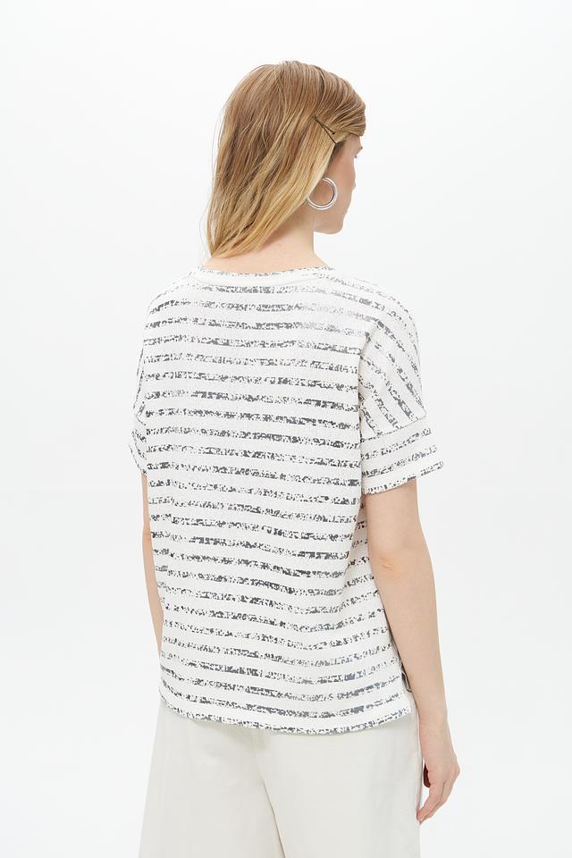 Модель имеет свободный крой, который не сковывает движений и обеспечивает максимальный комфорт. Короткие рукава делают блузу подходящей для тёплой погоды. Круглый вырез горловины лаконично дополняет дизайн.