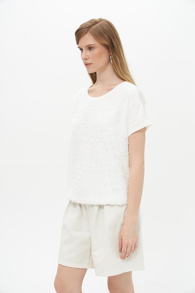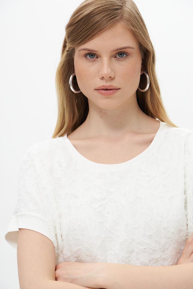 Белая блуза Lecomte из вискозы с выраженной текстурой. Модель свободного кроя с короткими рукавами и округлым вырезом горловины. Состав: 96% вискоза, 4% эластан. Состав: вискоза 96%, эластан 4%