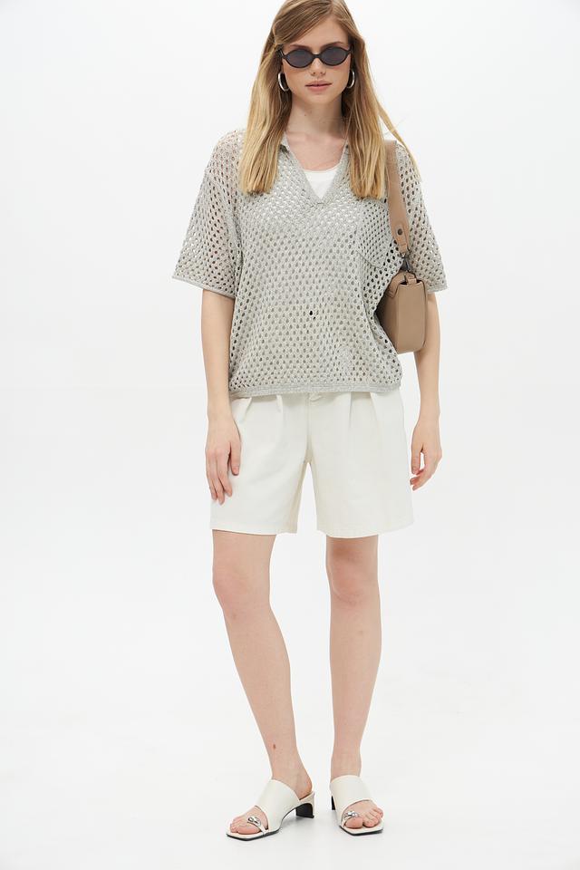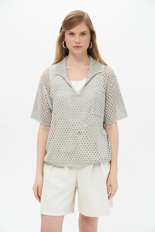 Модель имеет V-образный вырез и короткие рукава, что обеспечивает комфорт и свободу движений. Пуловер отлично сочетается с шортами, юбками или брюками, создавая стильный и непринужденный образ.