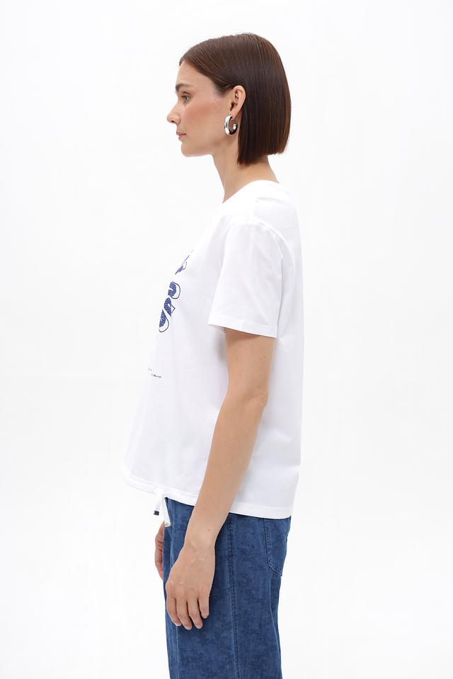 Эта футболка станет отличным дополнением к вашему повседневному гардеробу и позволит создать стильный и непринужденный образ. Она прекрасно сочетается с джинсами, шортами, юбками и другими элементами одежды.