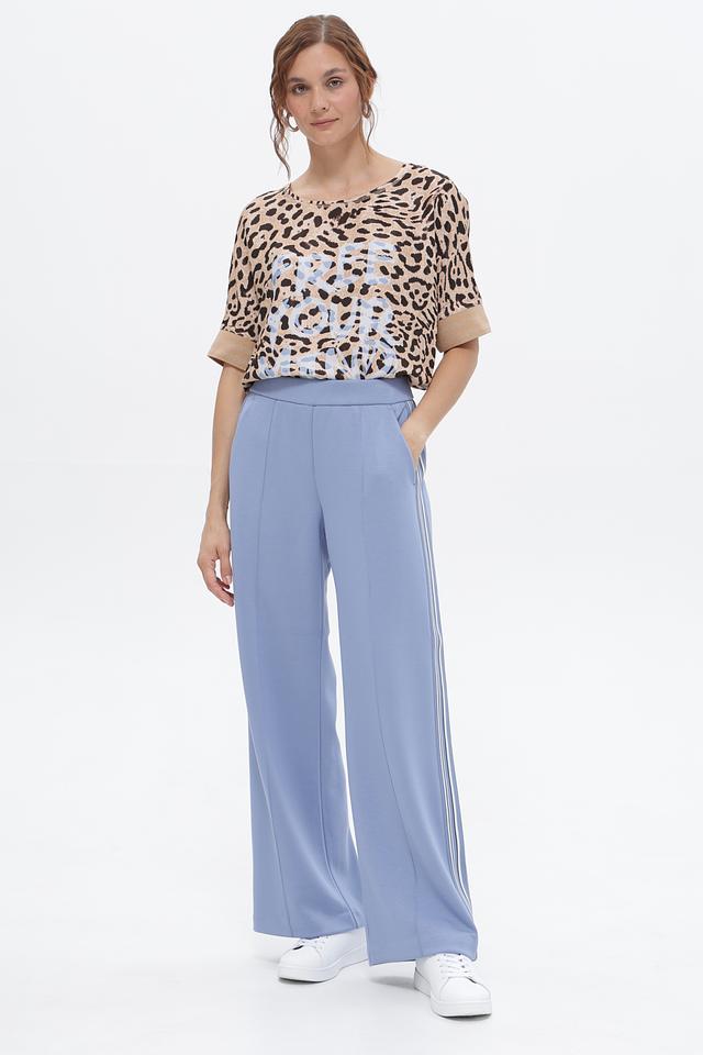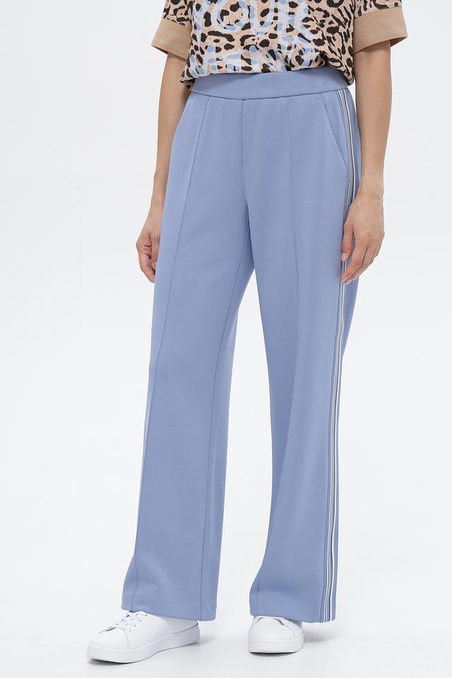 Голубые спортивные брюки Lecomte с полосками по бокам. Изготовлены из вискозы с добавлением полиэстера и эластана, обеспечивающих комфорт и свободу движений. Идеальный выбор для активного образа жизни. Состав: вискоза 55%, полиэстер 40%, эластан 5%