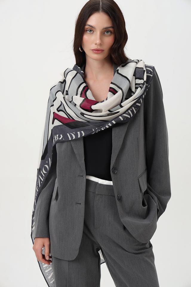 Этот шарф от Lecomte – отличный способ добавить изюминку в ваш повседневный или вечерний образ. Шарф выполнен в серой цветовой гамме с ярким абстрактным рисунком, сочетающим в себе оттенки белого, бордового и чёрного.