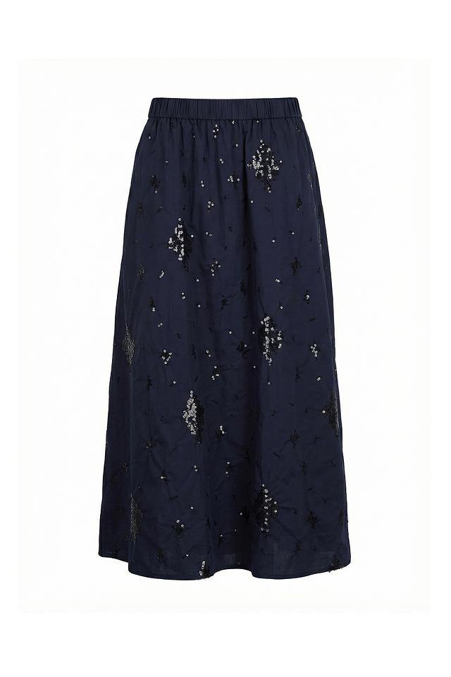 Юбка Lecomte темно-синего цвета, выполненная из хлопка, украшена вышивкой и имеет удобную эластичную талию. Идеальный выбор для создания элегантного и комфортного образа. Состав: хлопок 100%