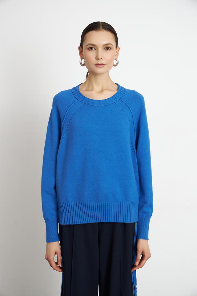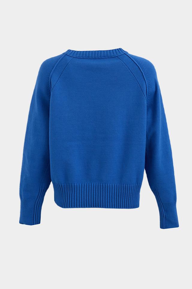 Цвет пуловера – насыщенный синий, который подчеркнет вашу индивидуальность и добавит яркости в ваш образ. Уход за изделием достаточно прост: рекомендуется машинная стирка в деликатном режиме.
