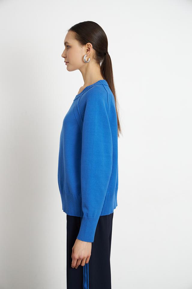 Пуловер Lecomte синий с вырезом