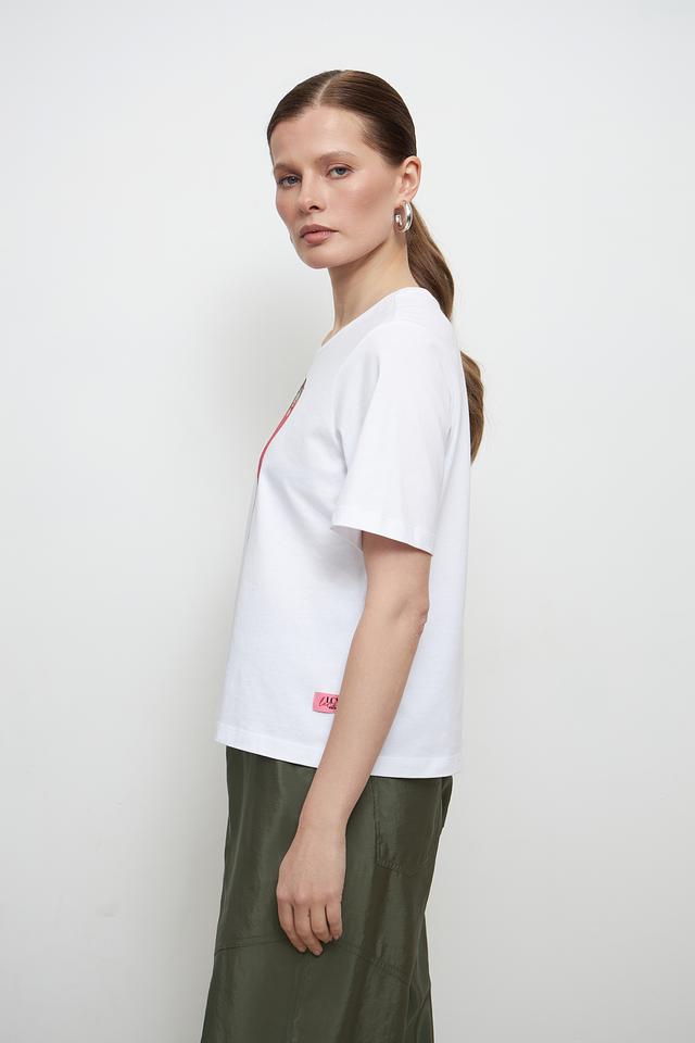 Круглый вырез горловины и короткие рукава делают футболку универсальной и подходящей для различных случаев. Небольшой логотип бренда расположен на груди. Футболка имеет прямой, слегка свободный крой, который обеспечивает свободу движений.