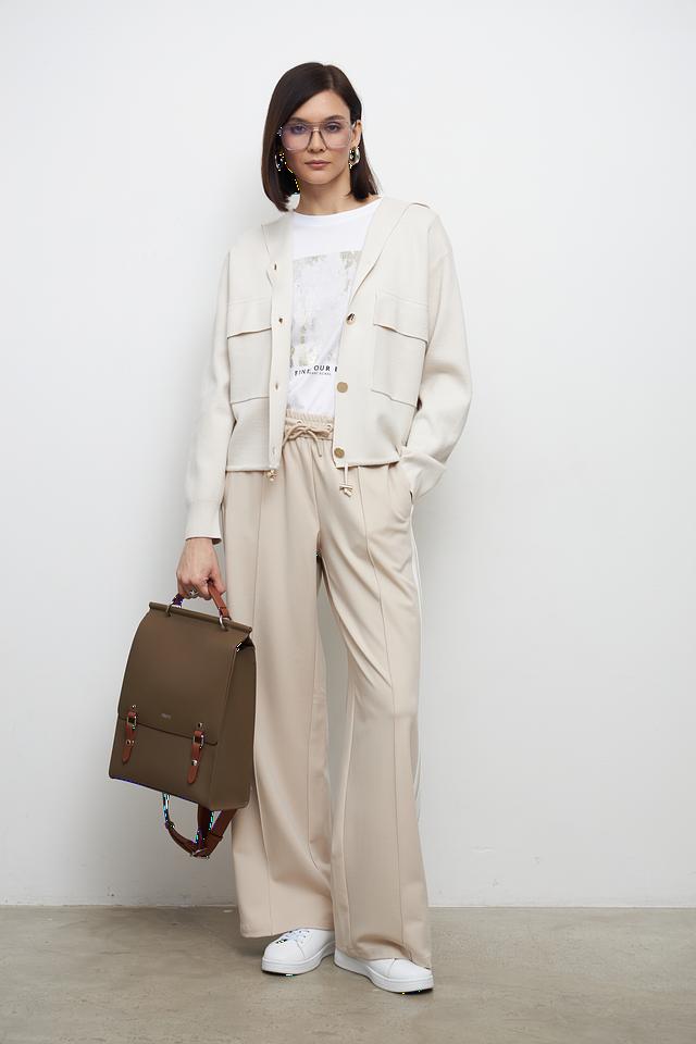 Представляем брюки палаццо от бренда Lecomte. Эта модель выполнена в нежном бежевом цвете и станет отличным дополнением к вашему гардеробу.