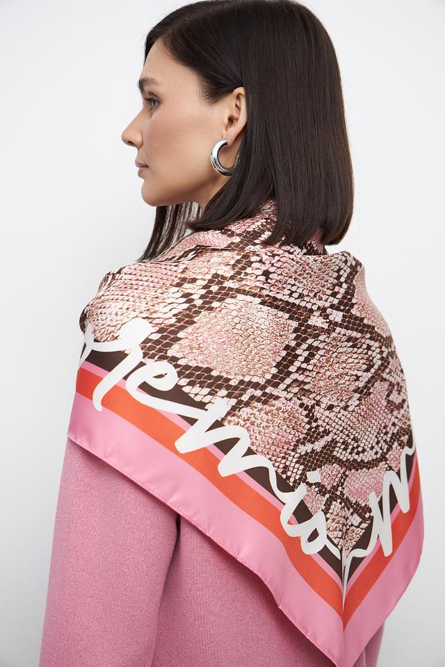 Шарф Lecomte нежно-розового цвета с оригинальным принтом в виде змеиной кожи станет ярким акцентом вашего образа. Изготовлен из 100% полиэстера, что обеспечивает легкость и приятные тактильные ощущения. Универсальный аксессуар, который можно носить разными способами. Состав: полиэстер 100%
