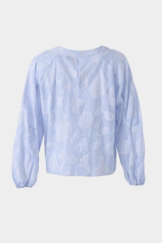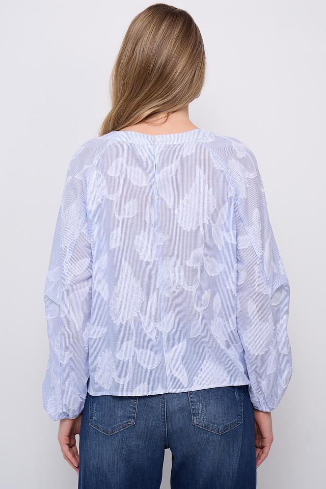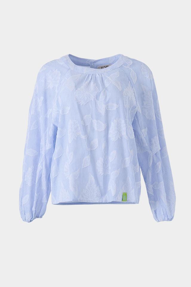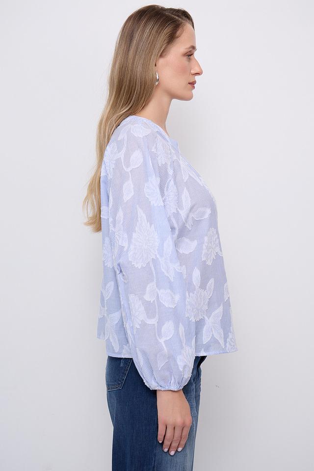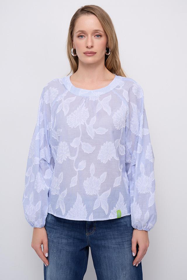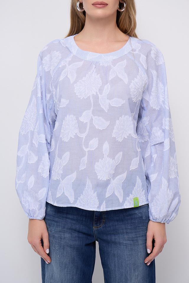 Легкая блуза Lecomte голубого цвета с нежным цветочным принтом и рукавами-фонариками. Изготовлена из 100% хлопка, обеспечивающего комфорт и воздухопроницаемость. Идеальный выбор для создания романтичного образа. Состав: хлопок 100%