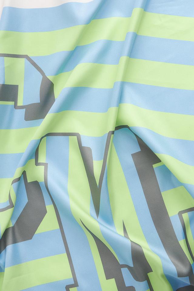 Геометрический рисунок в виде полос добавляет динамичности аксессуару. Шарф изготовлен из 100% полиэстера, что делает его легким, приятным на ощупь и простым в уходе.