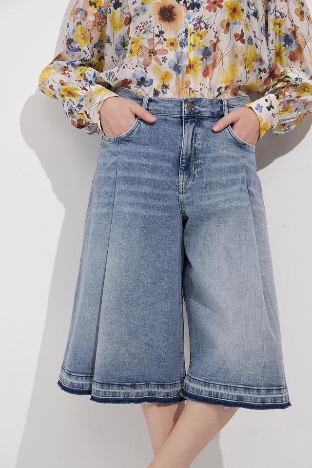 Шорты имеют высокую посадку и свободный крой, что обеспечивает комфорт и удобство в носке. Модель выполнена из качественного хлопка с добавлением небольшого количества эластана (1%), благодаря чему шорты хорошо держат форму и не сковывают движения.