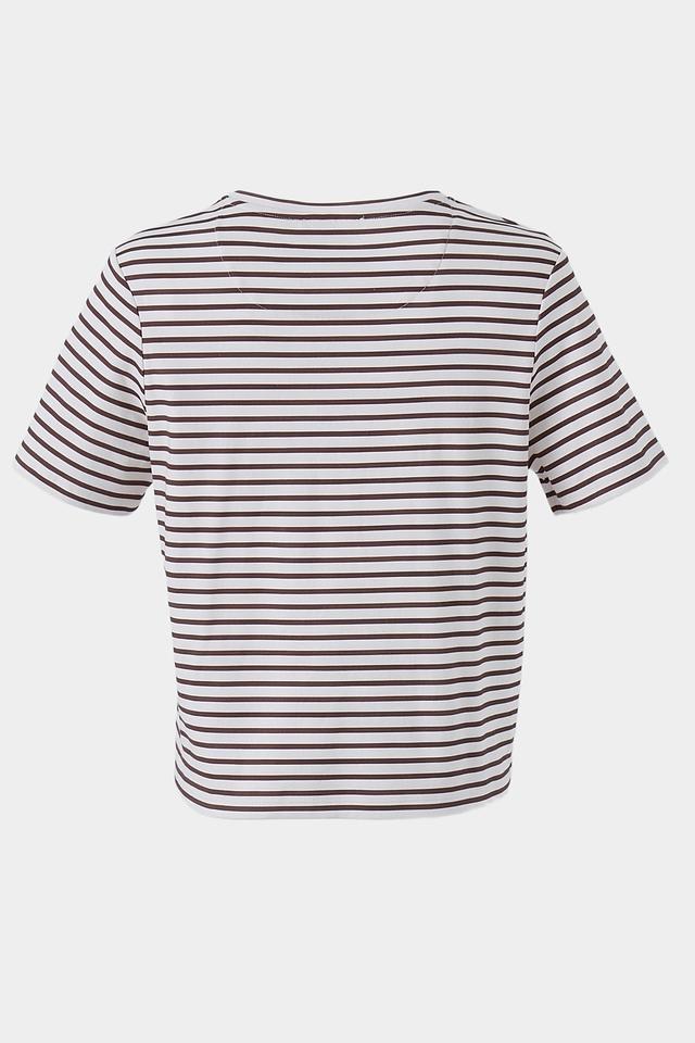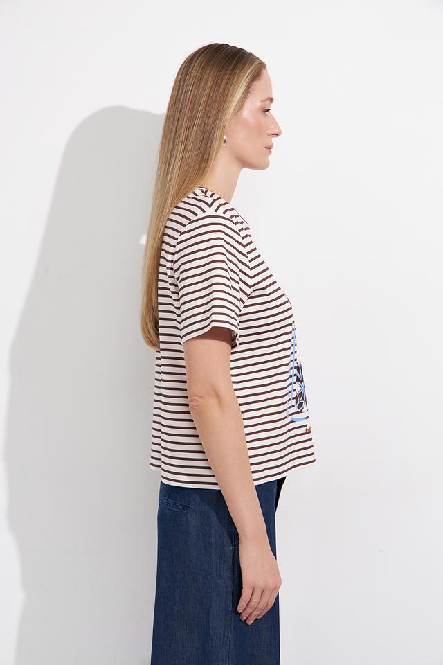 Женская футболка Lecomte белого цвета с ярким принтом в полоску — стильный и комфортный выбор для повседневного образа. Изготовлена из 100% хлопка, обеспечивающего приятные ощущения на коже. Состав: хлопок 100%