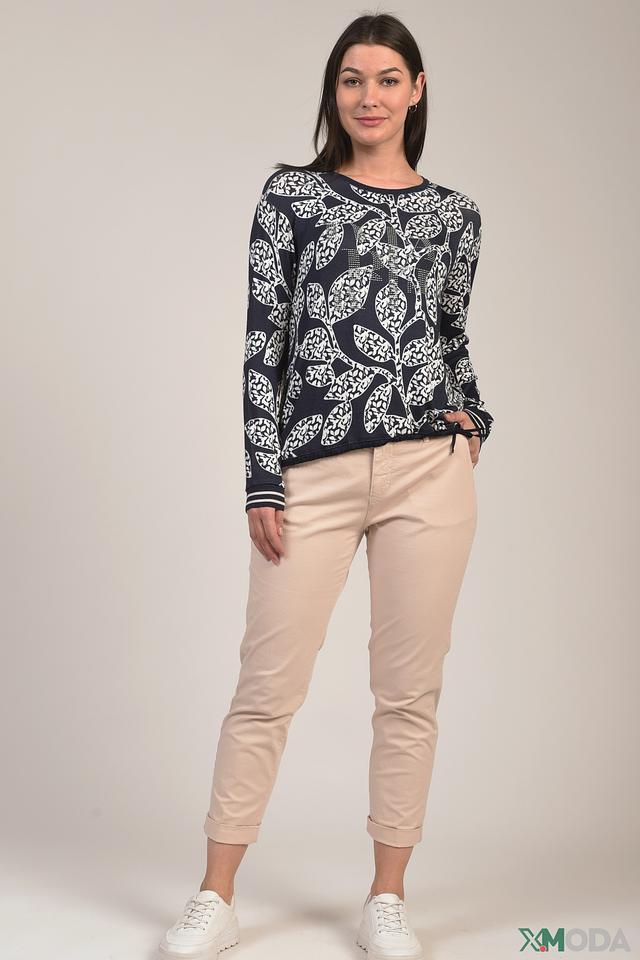 Блуза имеет удобный крой с длинными рукавами и круглым вырезом горловины. Изготовлена из высококачественной вискозы с добавлением эластана (95% вискоза, 5% эластан), что обеспечивает мягкость, приятные тактильные ощущения и хорошую драпировку.