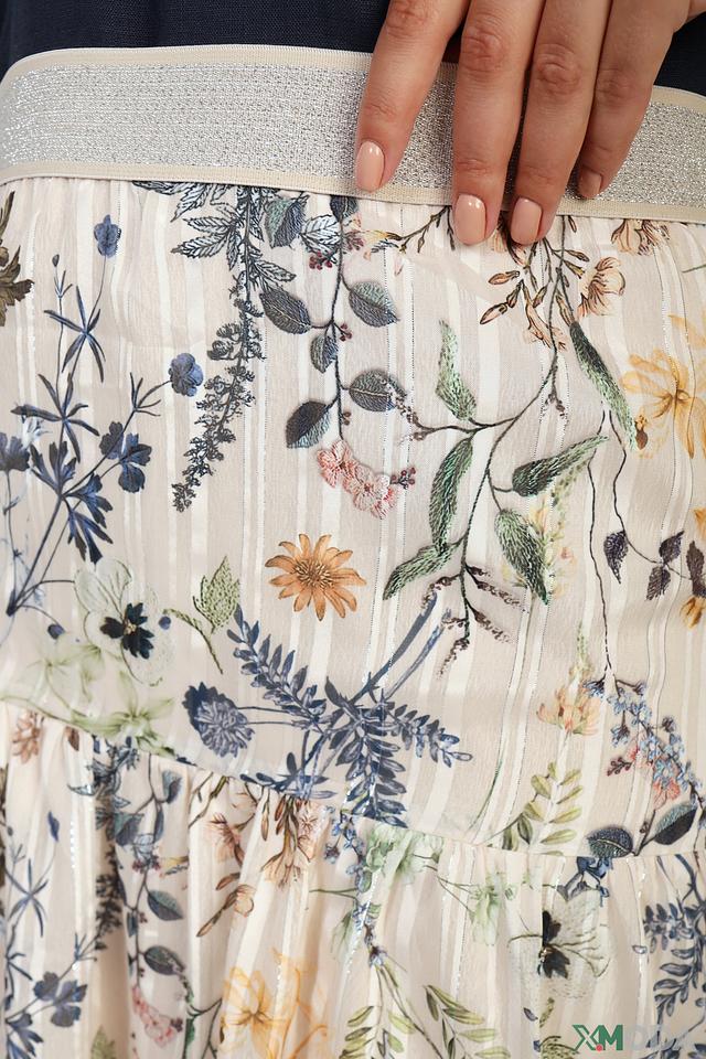 Юбка имеет плиссированный крой, который придает ей элегантность и динамичность. Яркий цветочный принт делает эту модель особенно привлекательной и подходящей для создания весенних и летних образов. Широкий пояс обеспечивает удобную посадку по фигуре.