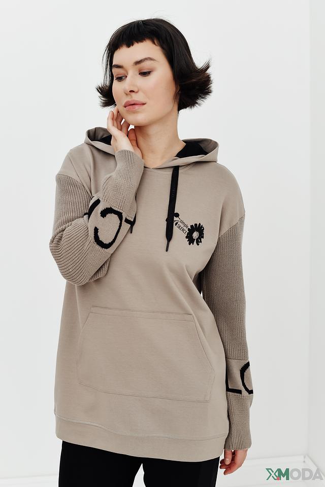 Бежевая толстовка от Lecomte с рукавами в крупную вязку и цветочным принтом – стильное и комфортное решение для повседневного образа. Модель свободного кроя с капюшоном и карманами. Состав: хлопок 48%, модал 48%, эластан 4%