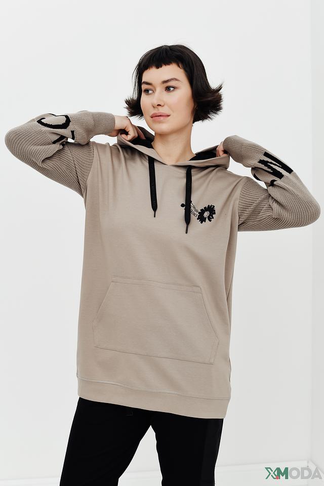 Толстовка имеет капюшон со шнурками для регулировки и удобные карманы. Состав ткани включает хлопок, модал и эластан, что обеспечивает мягкость, приятные тактильные ощущения и хорошую посадку по фигуре.