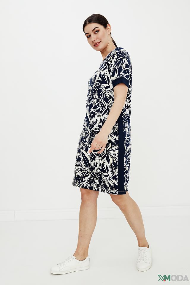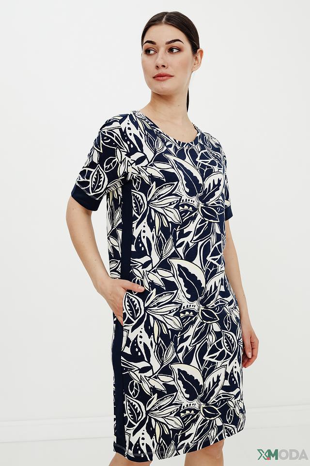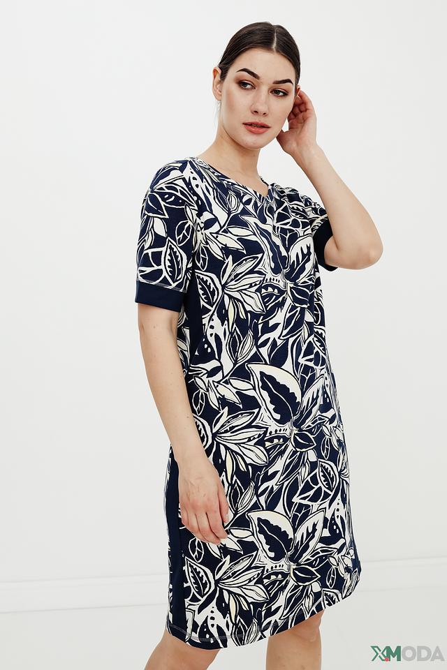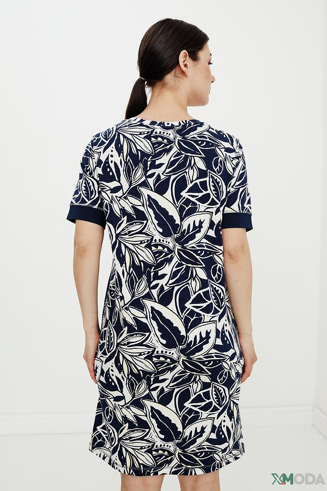 Платье Lecomte синего цвета с ярким цветочным принтом – отличный выбор для создания комфортного и стильного образа. Модель свободного кроя выполнена из мягкой ткани с добавлением хлопка и модала, обеспечивающей удобство в носке. Состав: хлопок 47%, модал 47%, эластан 6%