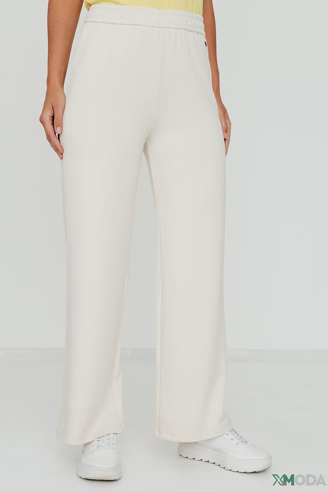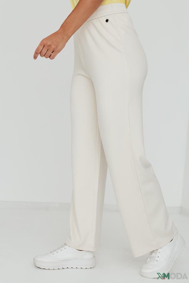 Брюки имеют свободный крой, который обеспечивает комфорт и свободу движений. Высокая посадка подчеркивает талию и визуально удлиняет ноги. Эластичный пояс с кулиской позволяет регулировать посадку по фигуре.