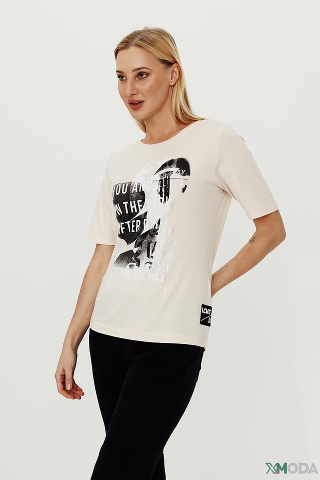 Бежевая футболка Lecomte с оригинальным принтом – стильное и комфортное решение для повседневного образа. Изготовлена из мягкого хлопка с добавлением модала и эластана, обеспечивающих приятные тактильные ощущения и хорошую посадку. Состав: хлопок 47%, модал 47%, эластан 6%