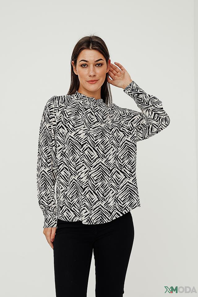 Эта блуза от Lecomte – отличный выбор для создания элегантного и современного образа. Выполнена в белом цвете с эффектным чёрным геометрическим принтом, который придает ей особую изысканность.