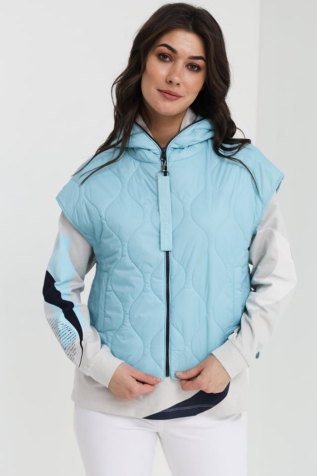 Жилет имеет стеганую фактуру, которая придает ему объем и текстуру. Модель застегивается на молнию, что обеспечивает удобство и практичность. Высокий воротник-стойка защитит от ветра и холода.
