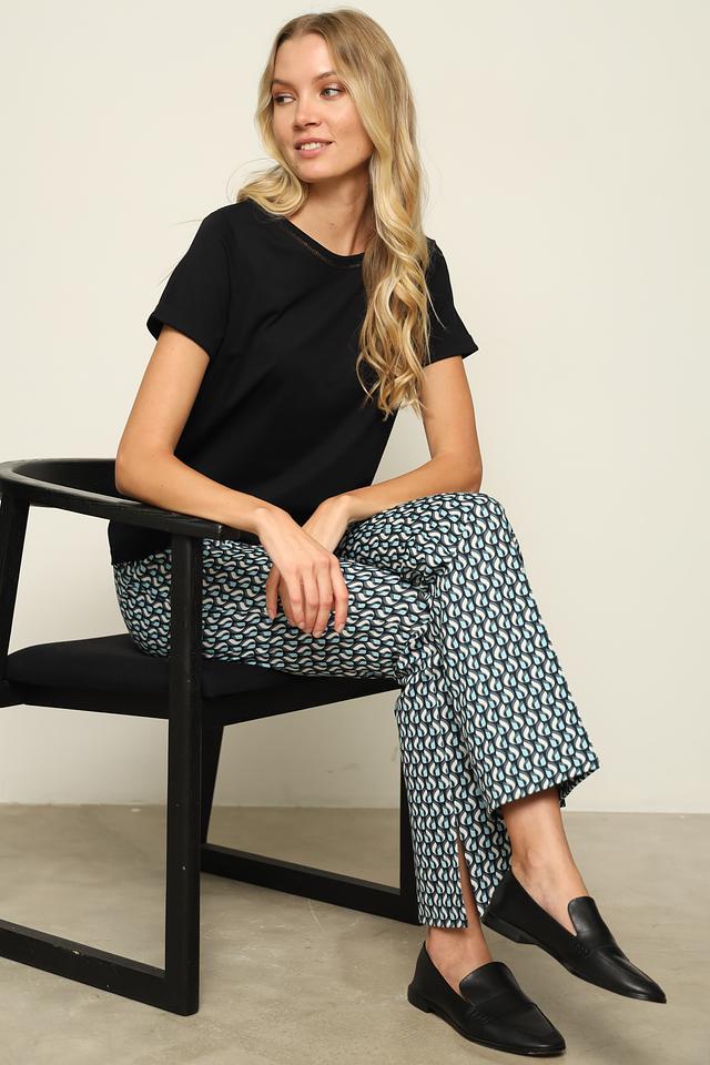 Эти брюки от Lecomte – отличный выбор для создания модных и удобных образов. Брюки выполнены в синем цвете и украшены ярким геометрическим принтом, который придает им индивидуальность.