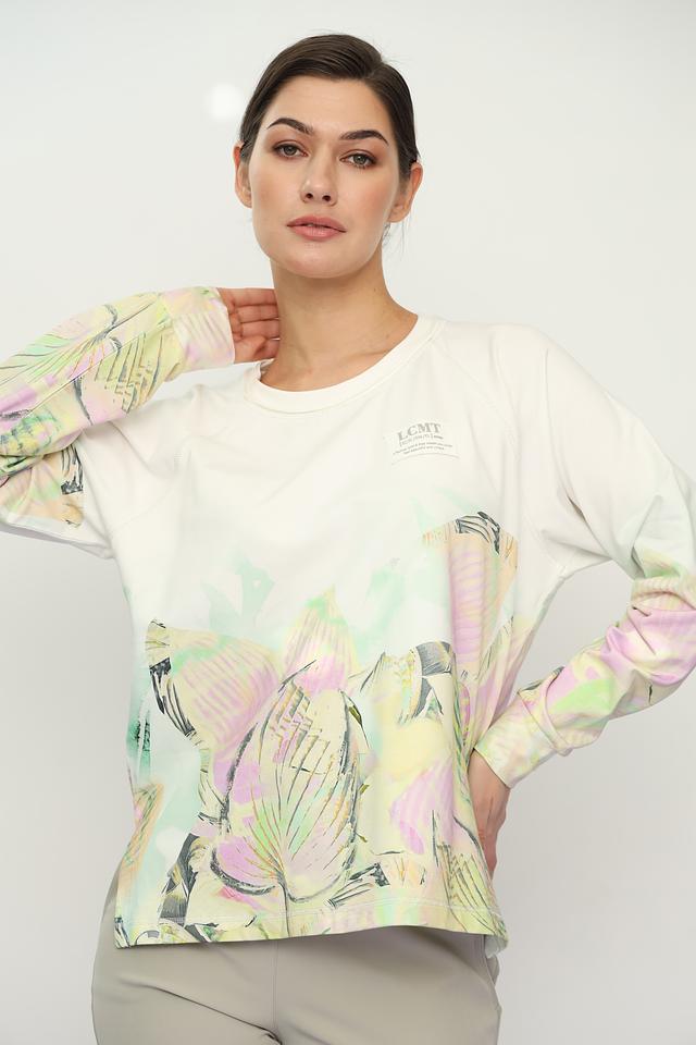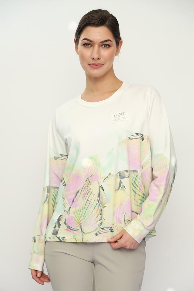 Женский пуловер Lecomte белого цвета с ярким тропическим принтом станет стильным дополнением к вашему гардеробу. Модель выполнена из мягкого и приятного к телу сочетания хлопка, вискозы и эластана, обеспечивая комфорт в носке. Состав: хлопок 60%, вискоза 35%, эластан 5%