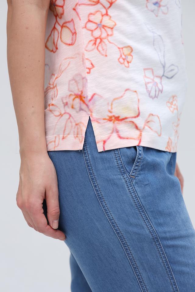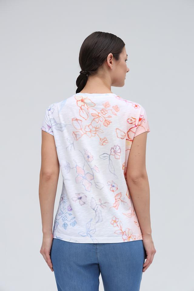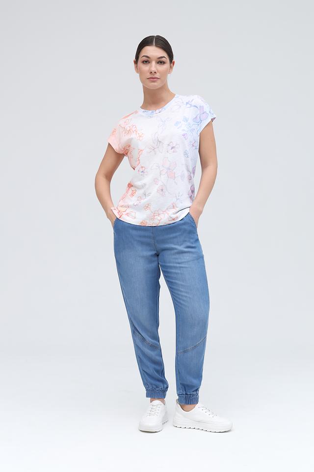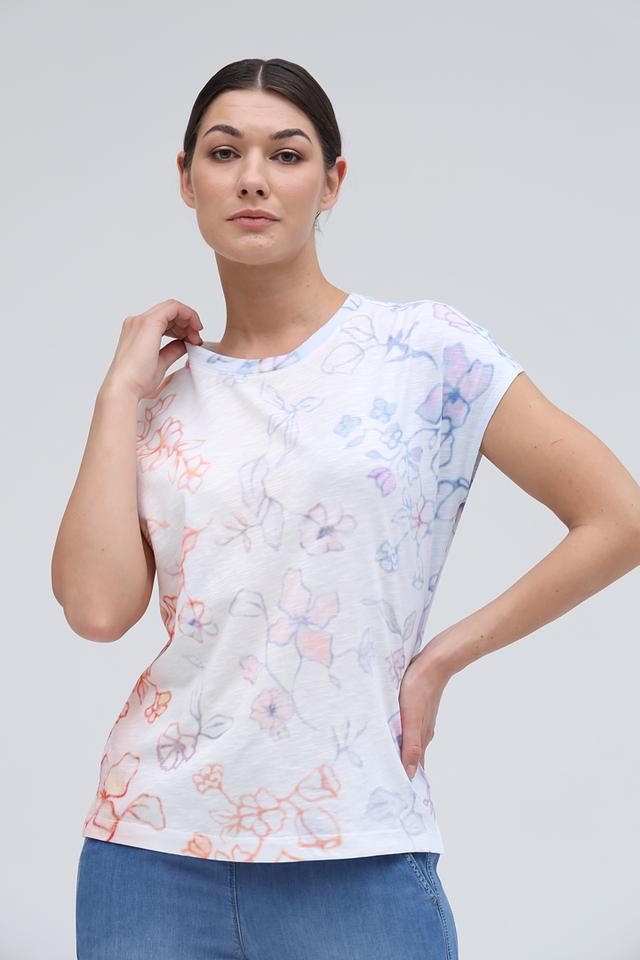 Женская футболка Lecomte белого цвета с нежным цветочным принтом станет отличным дополнением к вашему гардеробу. Изготовлена из мягкого и приятного к телу сочетания хлопка и модала, обеспечивая комфорт в течение всего дня. Состав: хлопок 50%, модал 50%