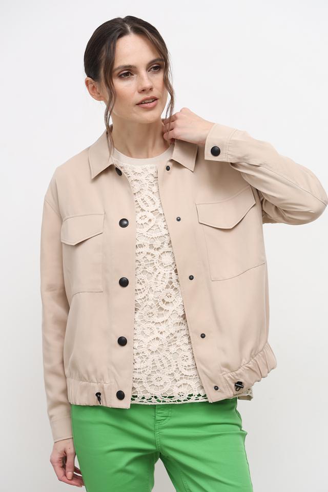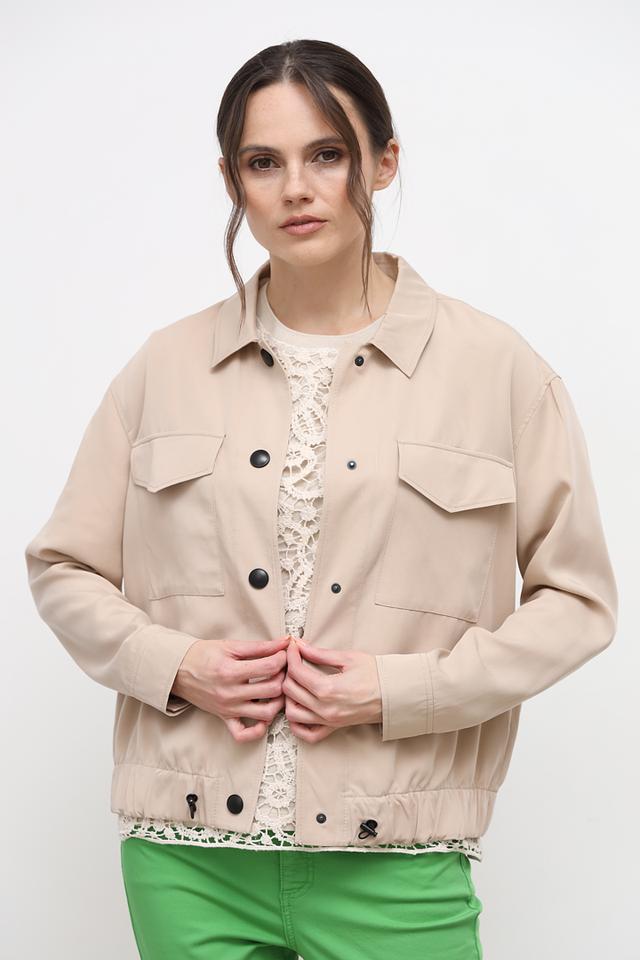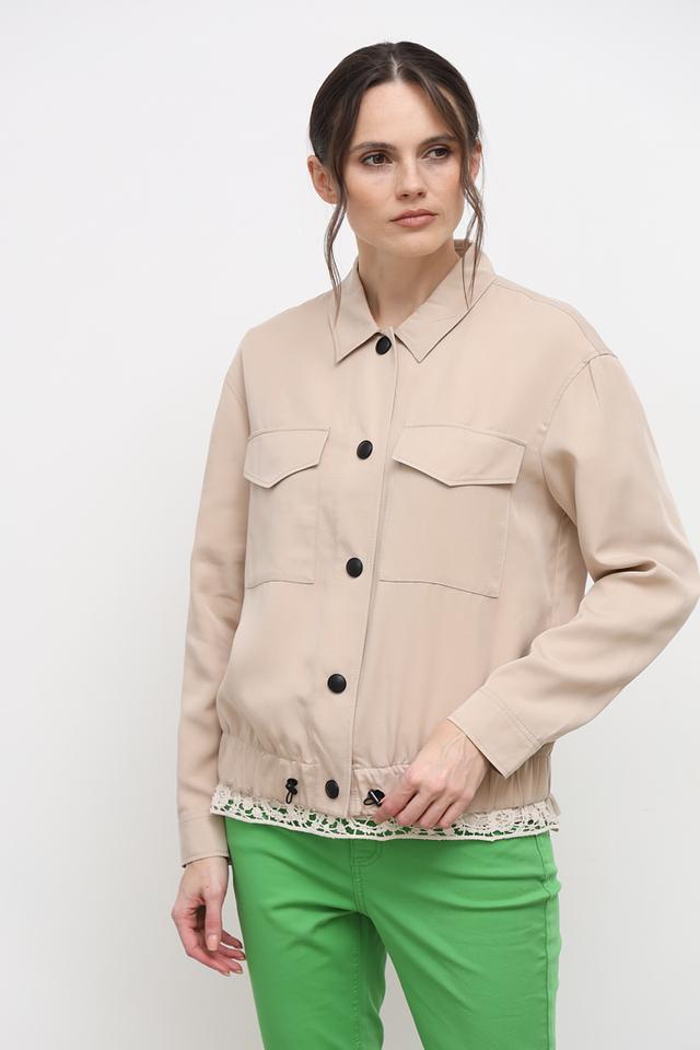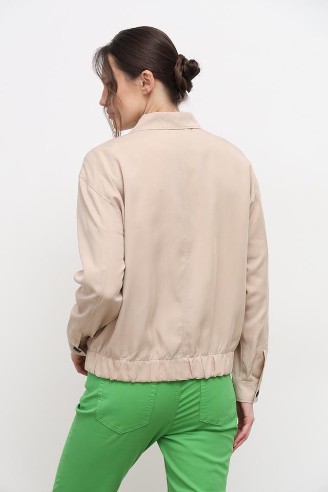 Дизайн жакета дополняют накладные карманы на груди, которые придают ему функциональность и стильный вид. Элегантный бежевый цвет делает этот жакет отличным выбором для создания разнообразных образов.