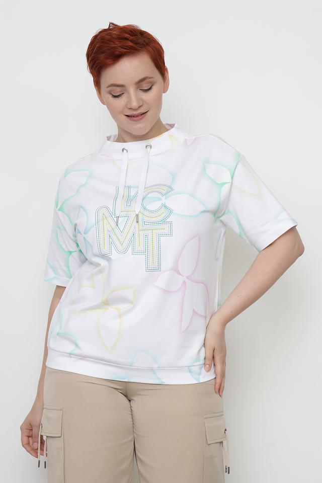 Эта стильная футболка от Lecomte станет незаменимой вещью в вашем повседневном гардеробе. Футболка выполнена в белом цвете и украшена ярким цветочным принтом, который придает ей легкость и свежесть.